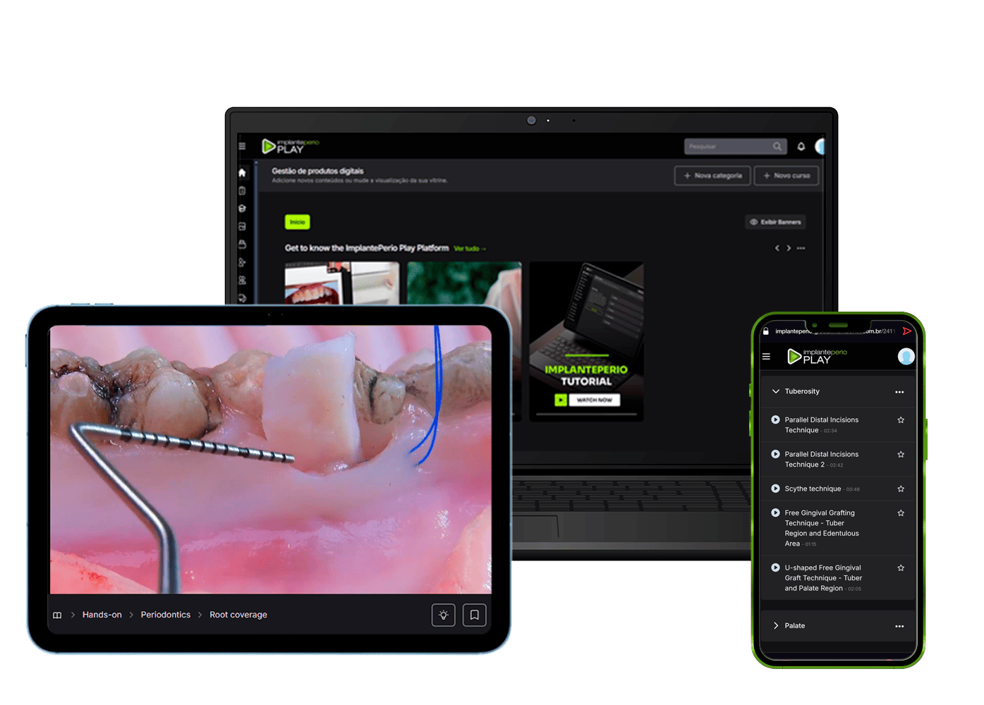 ImplantePerio Play is not for professionals who overlook the constant changes and daily updates within the dental field. The focus of this platform is progressive and ongoing learning, whether in between patients or during your dedicated study time.
